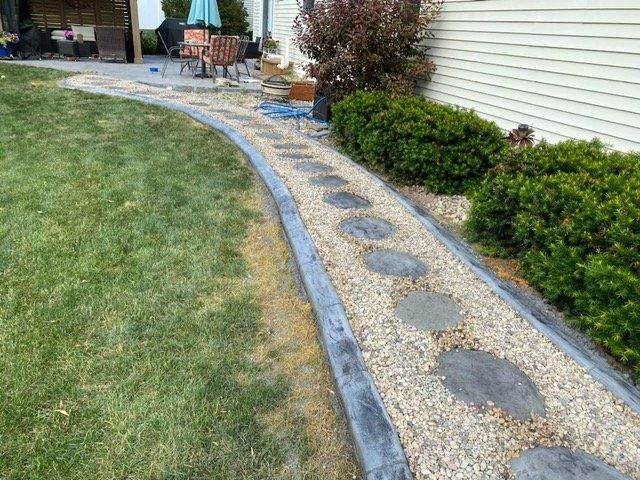Concrete Curbing is one of the best ways to show off your outdoor living space. It also adds to the beauty of your landscaping ideas. Concrete curbing can provide the borders you need in your garden area. With the solid borders, you can cut your lawn providing a solution by separating perfectly even cement curbs to your flower beds, gardens, and walking paths. Concrete curbs can be formed to fit your landscape project and can follow and an array of patterns you wish in your landscape design. Colors are one of our specialties. Concrete curbs can be colored to the colors of the exterior of your house or the area you wish to curb. Concrete curbing brings out a value that no other landscape border can bring. We serve the Appleton, Green Bay, Greenville, Kimberly, Grand Chute, Neenah, Menasha, WI, and the greater Fox Cities area.
